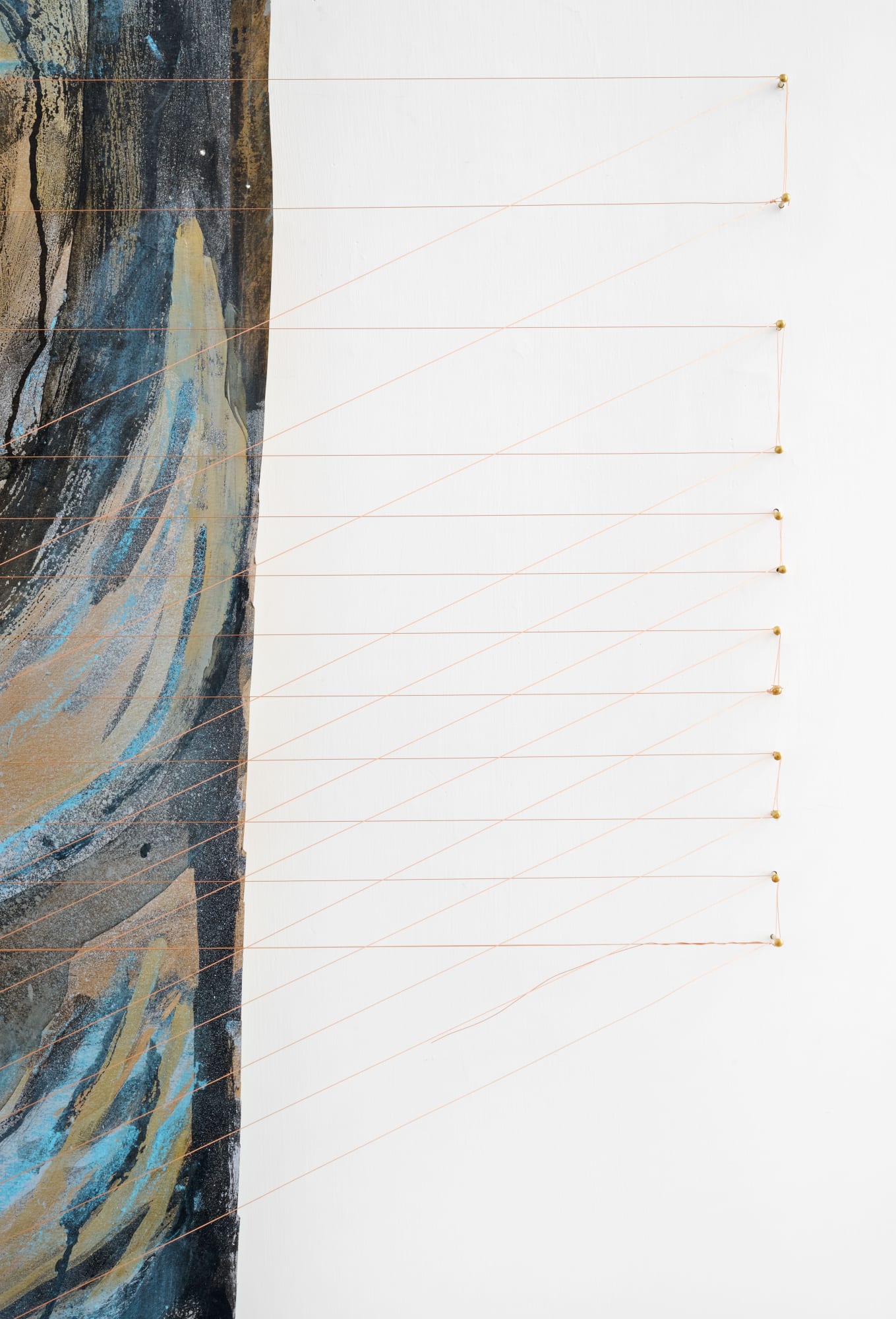 spray paint, graphite, enamel, gouache, masking tape, coline on drawing paper with copper wire