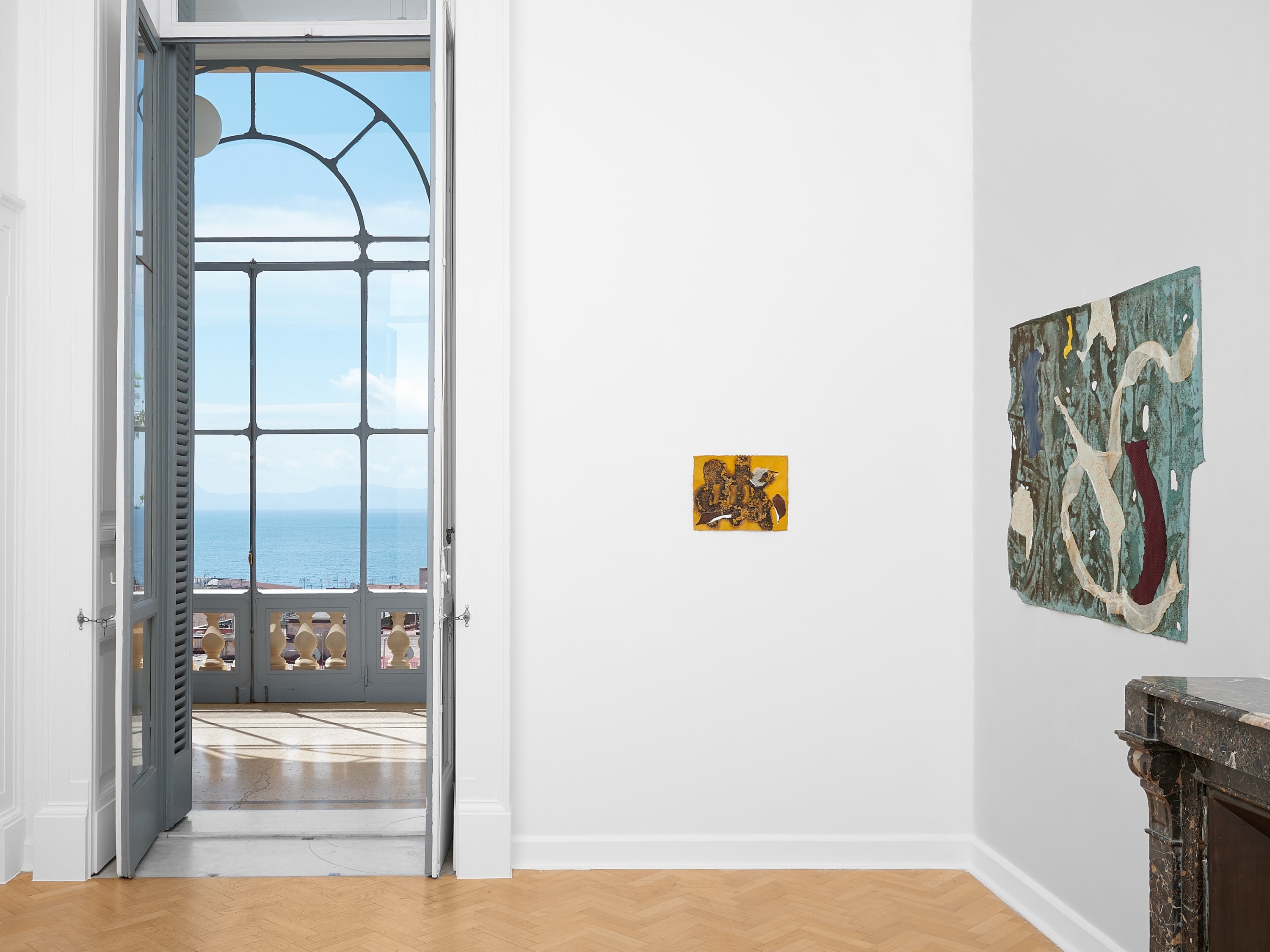 Small ‘asides’ and quiet coincidences form connections between the artists and the works brought together for this exhibition in Naples. A link can also be made with the city’s art of the past; evidence of artists savouring the push and pull of painting can be found in the space between and around the principal subjects of paintings from previous times. It is in this liminal gap that the movement of paint conjures a flicker of light on the curve of a cooking pot, for instance, a glimpse of a child playing in the shadows of a table, a memory of a landscape seen over a shoulder or the outlined shape and gritty textures of pavement edge felt underfoot.” – Jenni Lomax, 2025